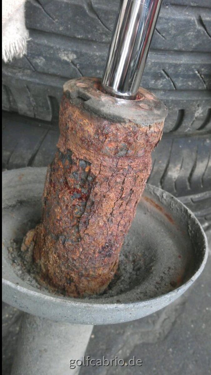 Bei meinenm 92er Sportline waren die Dämpfer auch durch. Das war bei km 170tsd. vor ca. 13 Jahren. Habe mir dann die Bilstein B4 Patronen für vorne und die B4 für hinten bestellt. Fahrwerk ausgebaut un die alten Patronen raus. Dann das Federbein wieder aufgehübscht und mit der Sprühdose schwarz lackiert. Das sieht heute noch sehr gut aus, wobei das Cabrio nur im Sommer gefahren wird und im Winter trocken steht.