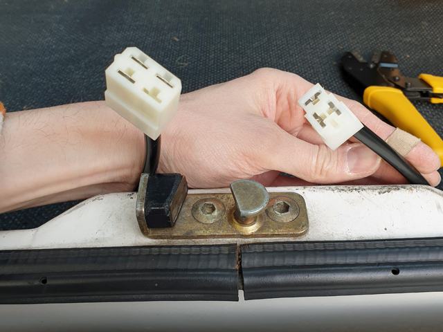 Für die Anhängerkupplung könnte ich auch mal ein Update schreiben. Die Hardware ist ja schon etwas länger da und auch grundlegend überarbeitet. Die Stoßstange ist nicht perfekt aber für den Bedarsfall reicht sie. Irgendwie weiß ^^ . Was aber immer noch nicht gemacht war ist der Kabelbaum. Sie soll ja nur bei Bedarf dran, dafür muß die Kabelverbindung dann auch trennbar sein. Damals hatte ich einen 7-poligen Rundstecker von VW im Kopf, da hat mir aber die Verfügbarkeit einen Strich durch gemacht. Und da man ja eh etwas von links und etwa von rechts braucht ist es dann final ein 3-poliger und ein 4-poliger geworden. So ist auch eine Verwechslung ausgeschlossen: