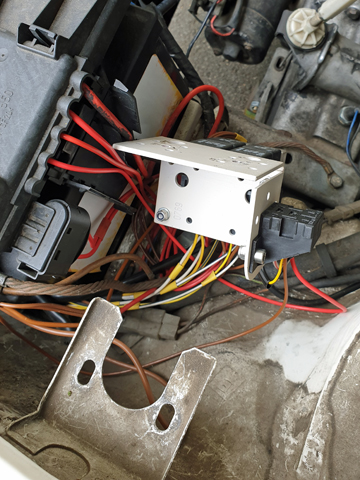 Die Ansteuerung läuft über ein einfaches Relais. Platz hat sich neben der Relaisschaltung für die Scheinwerfer gefunden. Die Halterung hatte ich damals nicht perfekt lackiert, also wurde diese direkt mit überarbeitet: