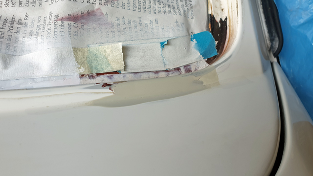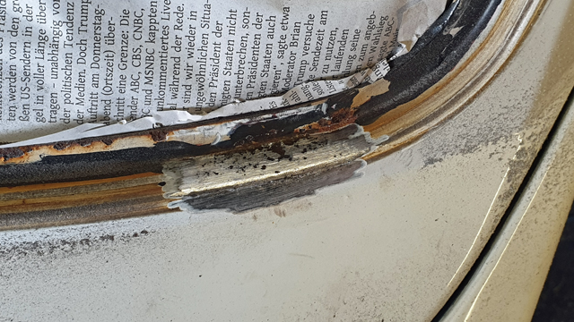 Wie es sich für das Golf 1 Cabriolet gehört ist auch bei mir da Rost vorhanden. Allerdings nicht zum Ersten mal - man kann deutlich Lacknasen im Spalt zu Kotflügel & Motorhaube erkennen. Da war wohl damals einer nicht gründlich genug. Hatte es immer vor mir her geschoben und dann doch mal in Angriff genommen. Bilder gibt es nur ein paar, aber immerhin etwas.