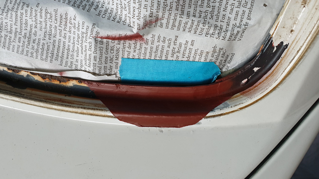 Irgendwie hat es wunderbar geklappt. Keine harte Kante lackiert, zum Scheibenwischer und die A-Säule hoch kann man eigentlich nix erkennen an Übergang. Kontrast in der Farbe zu Kotflügel und Motorhaube ist natürlich da, aber der Farbton "L90E Alpinweiß 38 Jahre mit über 200tk in der Sonne" ist leider immer noch nicht so erhältlich. Wenn man es aber nicht weiß, fällt es nicht auf. Und wenn es nicht auffällt schaut man nicht mit der Lupe hin.
