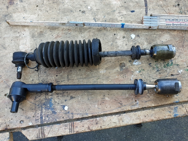 Ich denke man kann den Riss in der Gummimanschette erkennen. Wenn es nur der Spurstangenkopf wäre, alles gut. Aber: Es ist auch die erste, sprich aus 1983. Und damit eben nicht wechselbar - es muß die ganze Spurstange getauscht werden.