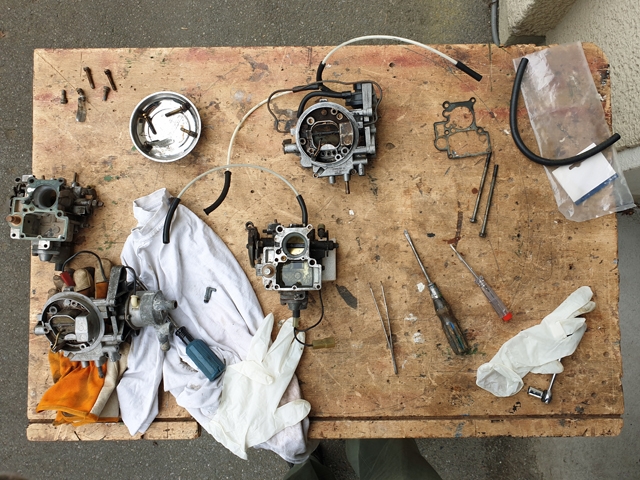 Ja, da ist noch eine drin. Die ist auch durchlässig, Dichtung sieht ausreichend ok aus. Also in den eigentlichen Vergaser gesteckt, Pumpe wieder zusammen gesteckt und probiert: geht. Weiter zusammen bauen, einbauen. Startversuch: Ein Zuck, dann nix. Mal mit Vollgas gestartet, an; bleibt aber nicht an. Leerlaufschraube gerichtet, Gemischschraube gerichtet. Nach dem nächsten Start bleibt er an. Reagiert sehr flüssig auf das Gaspedal. Geht nicht aus, zickt nicht. Ein paar Versuche später immer noch ok