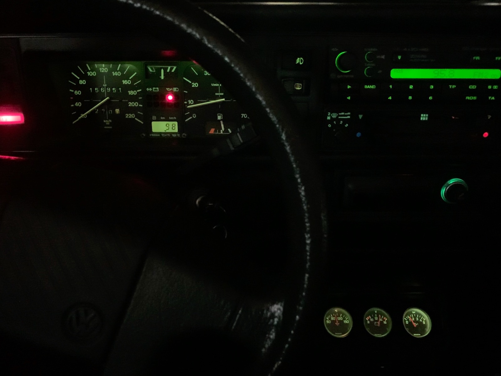 1. Die Werte der beiden Temperaturgeber weichen ca. 6-10°C von einander ab. Dabei zeigt das am VDO (50-150°)-Geber angeschlossene Instrument immer weniger an, als das am originalen (50-180°?). Ist auch so, wenn man die Anschlüsse tauscht, jetzt gerade hängt die MFA am VDO-Sensor und das Zusatzinstrument am originalen Geber.