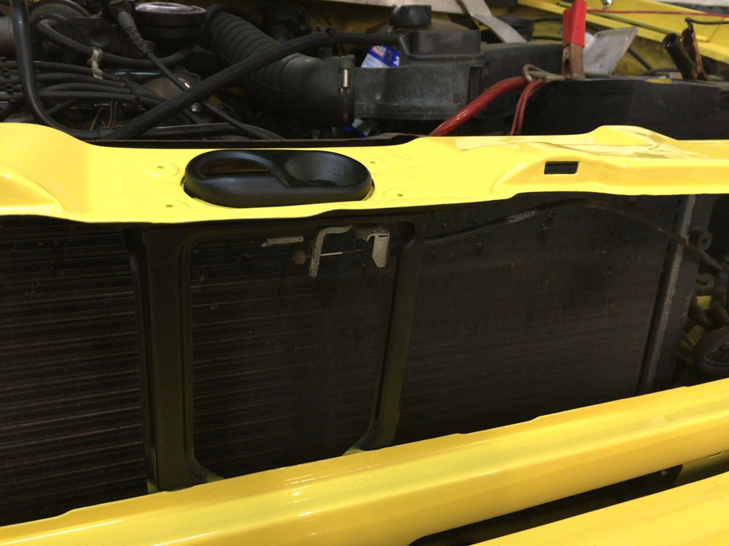 Frage an die Experten. Ist das hinter dem Kühlergrill stehende Blech am Schloßträger (das unter dem Motorhaubenschloß) eigentlich ab Werk geschwärzt oder immer in Wagenfarbe?