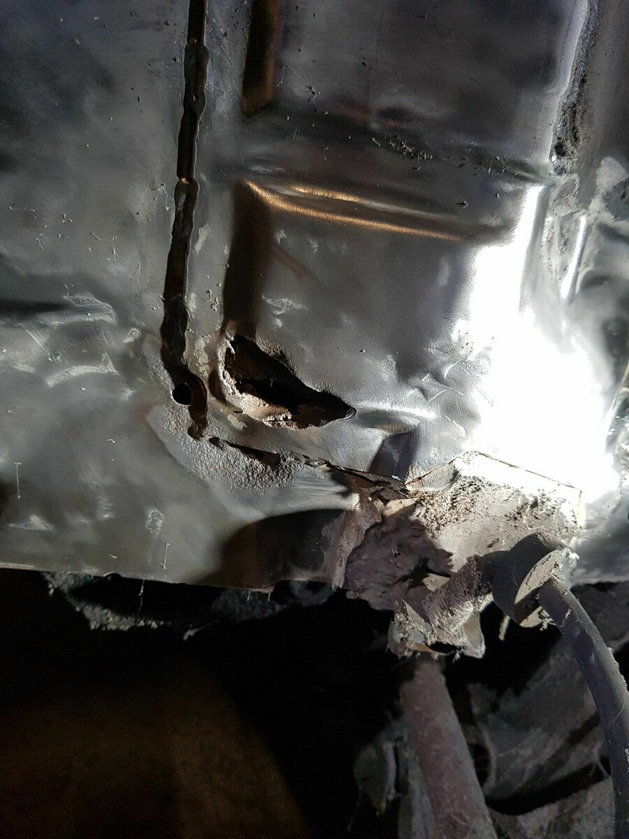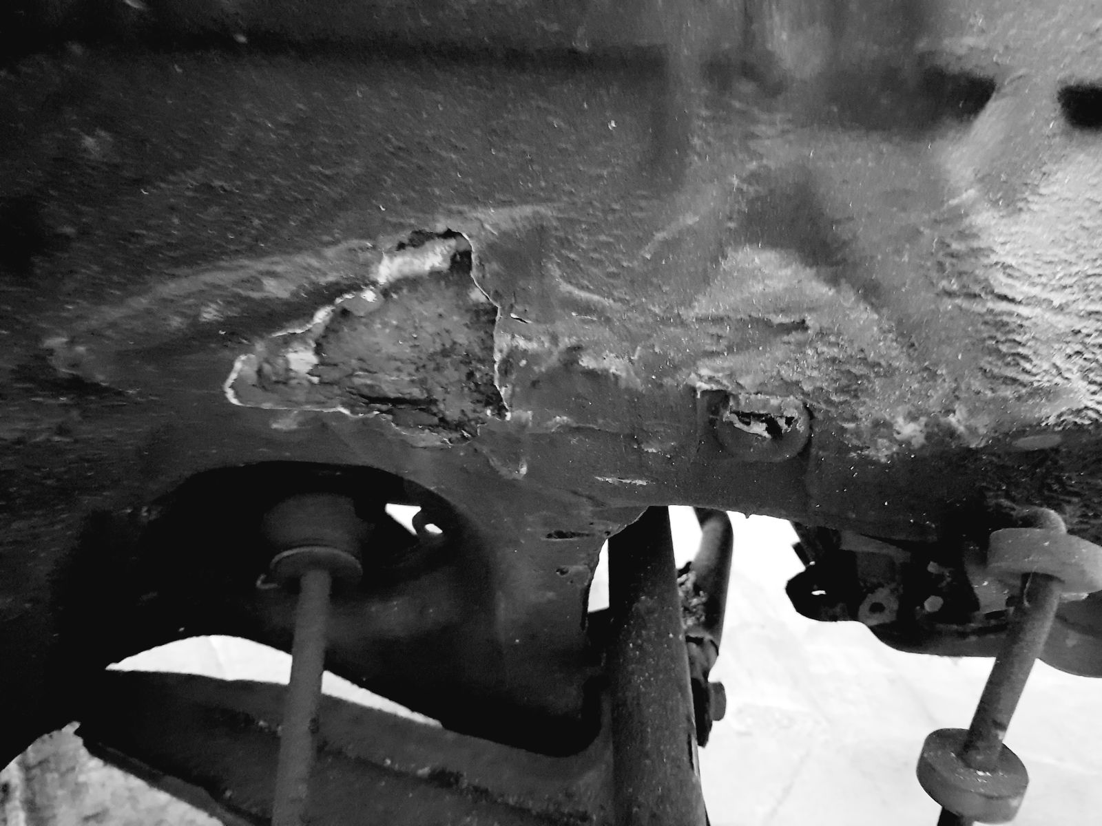 Hier ist die Struktur hinüber .... und es würde mich wundern wenn es im Bereich der Hinterachsaufnahme nicht ähnlich aussieht....