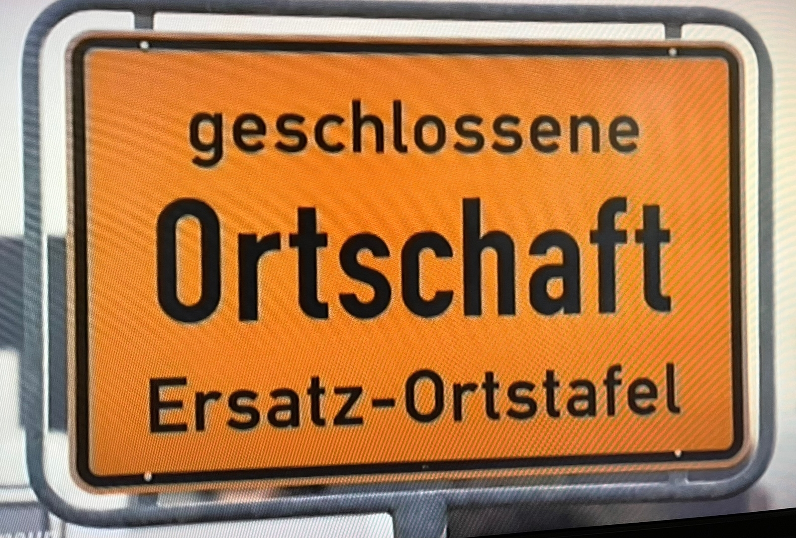 Stimmt. Nur wunder mich, dass die Herstellung eines Ortsschildes offensichlich sehr lange dauert , und man vorübergehend das neutrale Ortseingangsschild setzen muss.