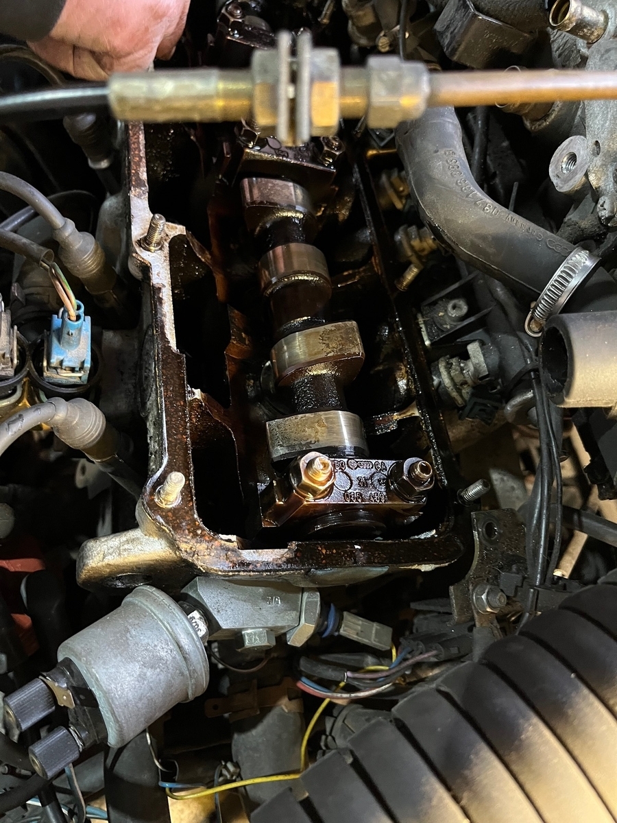 Als wir dann den Ventildeckel ab hatten, konnte man sehen, dass die alte Korkdichtung völlig auf war.