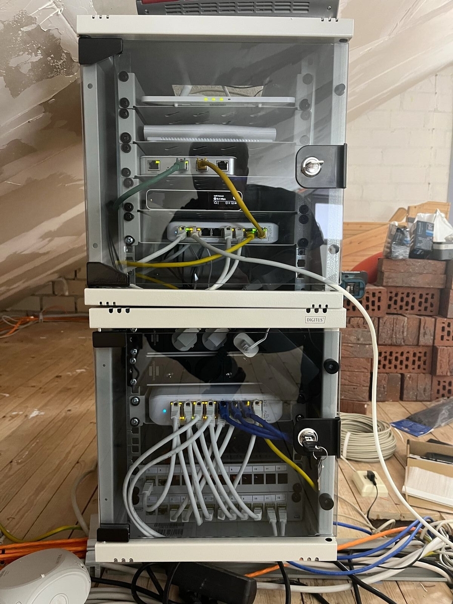 Daher habe ich da privat auf "kostengünstig" gesetzt und von Digitus 2x 10" Schränke (über Amazon) gekauft. Patchpanel, Steckdosen und Regalböden auch gleich dazu. Patchpanel habe ich mit Keystone Modulen bestückt. Seitdem ist der ganze Telefon, Internet und PV Anlagen Steuerungs Elektronikkram passabel sortiert.