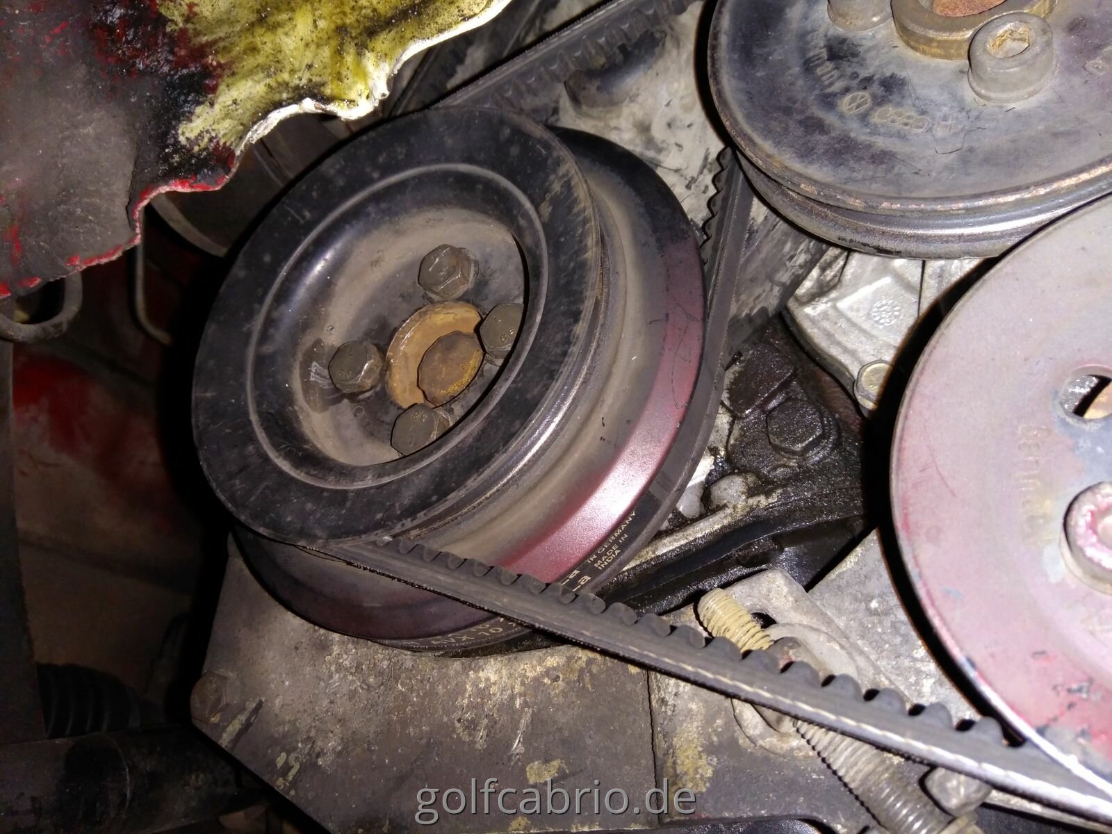 Hallo liebe Gemeinde, ich brauche mal eure Ratschläge. Habe vor ca. einer Woche an unserem 2H den Zahnriemen und Spannrolle gewechselt und hatte massive Probleme, die Steuerzeiten vernünftig einzustellen. Es ist mir einfach nicht gelungen, dass diese dann nach zweimaligem Durchdrehen des Motors noch stimmen. Immer wenn ich die Spannrolle im Uhrzeigersinn gedreht habe, um den Zahnriemen zu spannen, hat sich die Kurbelwelle verstellt, und zwar in Richtung vorn, also zur Fahrzeugfront. Ich habe den Zahnriemen dann so aufgelegt, dass ich diese Verschiebung mit einkalkuliert habe, aber jedes Mal nach dem manuellen Durchdrehen des Motors passte es einfach nicht. In meiner Verzweiflung, und ich hatte mir diesbzgl. noch keine Info besorgt, in welche Richtung die Spannrolle zu drehen ist, um den Riemen zu spannen, habe ich dann den Riemen durch drehen der Spannrolle gegen den Uhrzeigersinn gespannt. Und siehe da, passt alles. Auch nach mehrmaligem Durchdrehen des Motors. Motor startet und läuft wie 'ne Eins. Jetzt habe ich aber die Info, dass der Zahnriemen durch Drehen der Spannrolle im Uhrzeigersinn gespannt wird. Also muss ich wohl nochmal ran. Wie kann ich es zum Teufel vermeiden, dass sich die Einstellungen nach Spannen und Durchdrehen des Motors verstellen? Darüber hinaus war es mir neu, dass die Riemenscheibe an der Kurbelwelle nicht getrennt vom Zahrnriemenrad der Kurbelwelle ist. Habe ich an meinem Scirocco mit 1,6 RE Motor so (hat noch die Zahnriemenabdeckung aus Blech. Das macht es etwas einfacher. Oder welchen Trick gibt es da, den Zahnriemen auf die Kurbelwelle aufzulegen und sehen zu können, ob er richtig aufgelegt ist, wenn die untere Zahnriemenabdeckung montiert ist!?