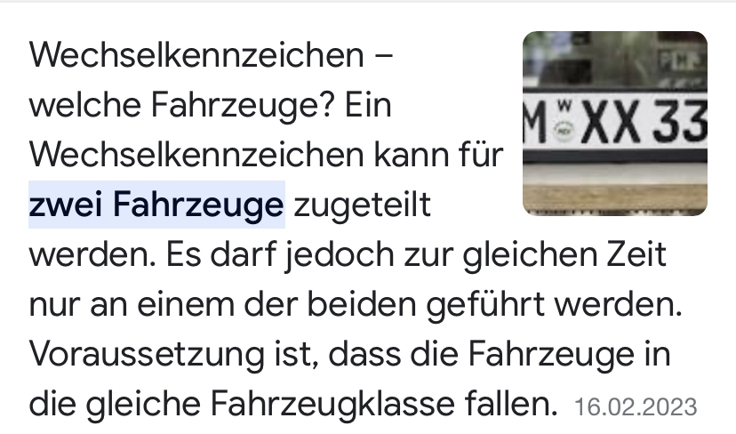 GENAU das war auch der Grund, warum ich vom Wechselkennzeichen dann wieder abgerückt bin !