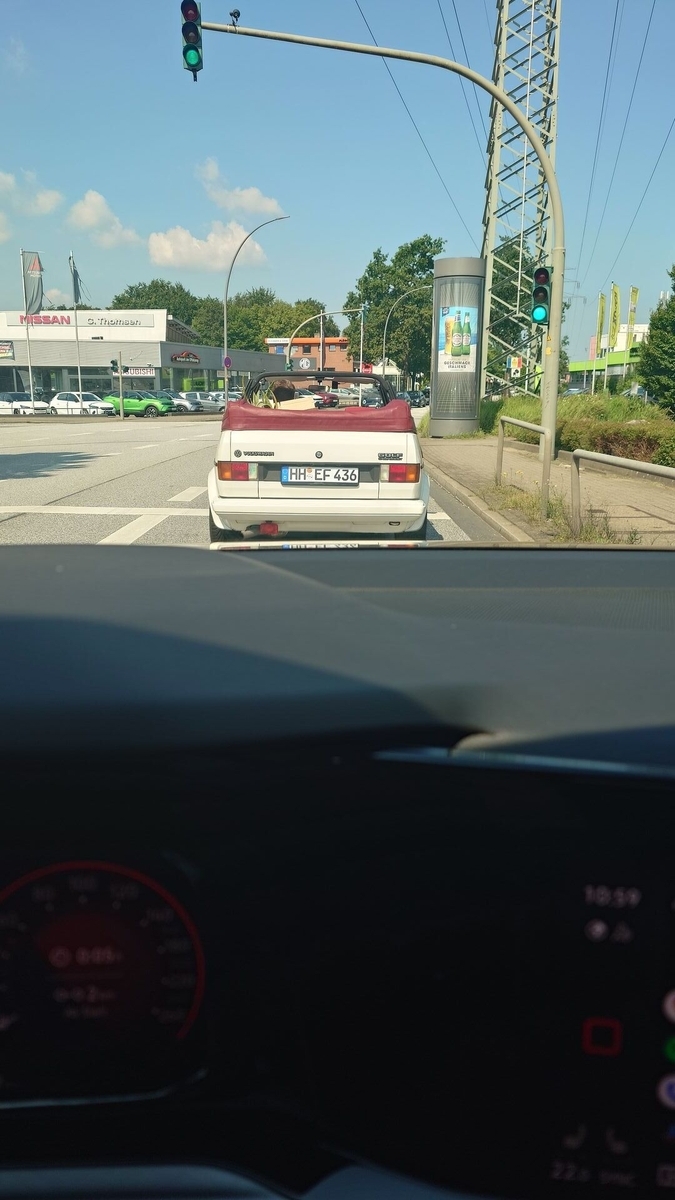 Heute ist mir um ca. 14:45 Uhr auf der Holsterhauser Staße in Wanne-Eickel ein weißes Golf 1 Cabrio entgegengekommen, Kennzeichen BO-OO XXX. Gegrüßt habe ich nicht, war incognito mit dem Alltagsfahrzeug unterwegs.