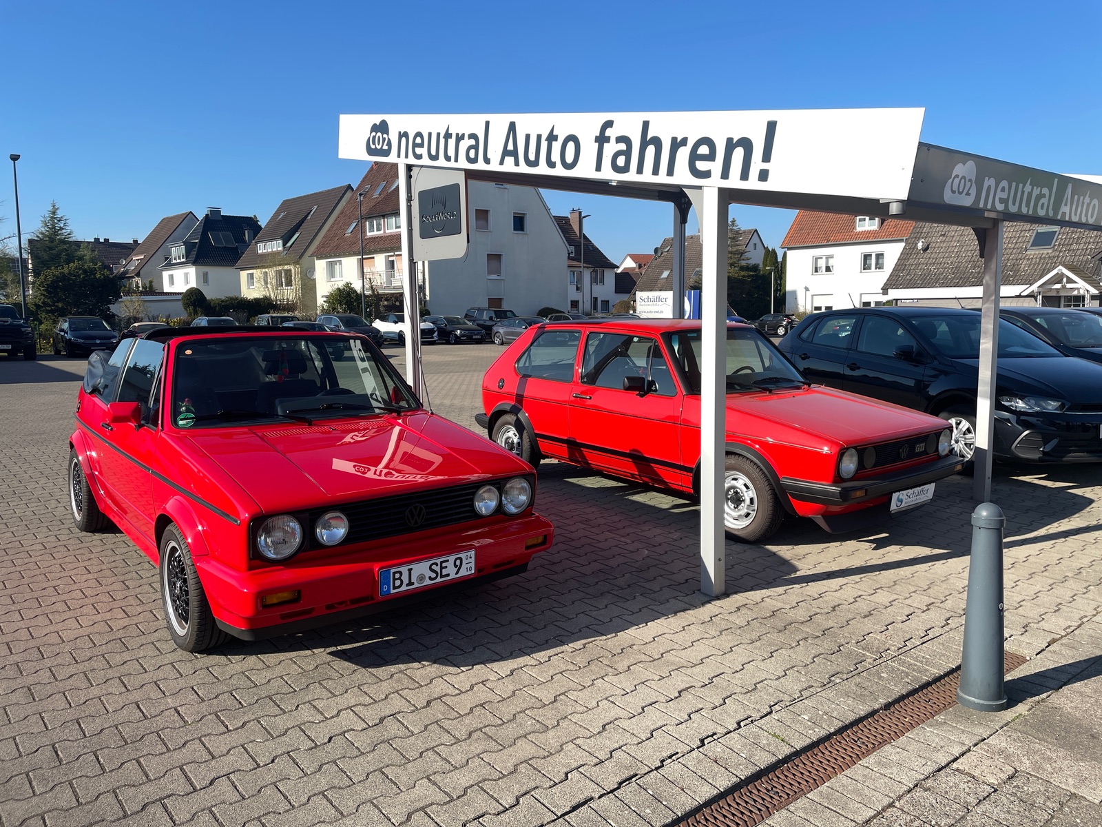 Heute in Rheine ein weißes Golf 6 Cabrio und ein zinngraues Golf 1 Cabrio VFL.