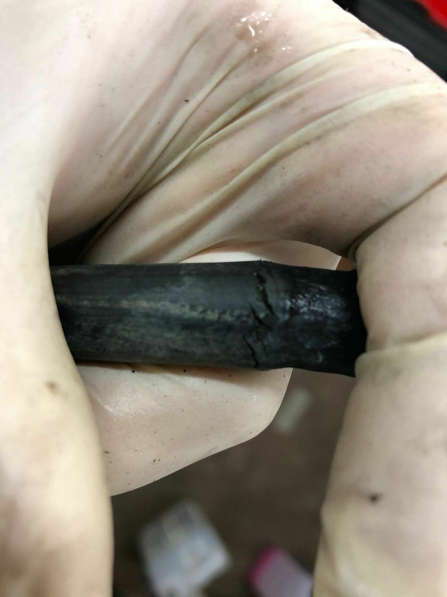 Die ersten beiden sind der Kühlwasserschlauch, Textilummantelt. Hersteller war nicht erkennbar, Porös war er nur dort, wo ein Radius ist bzw. jeweils in der Nähe des Anschlusses. Der mag wohl keine Veränderung der Form in jeglicher hinsicht.