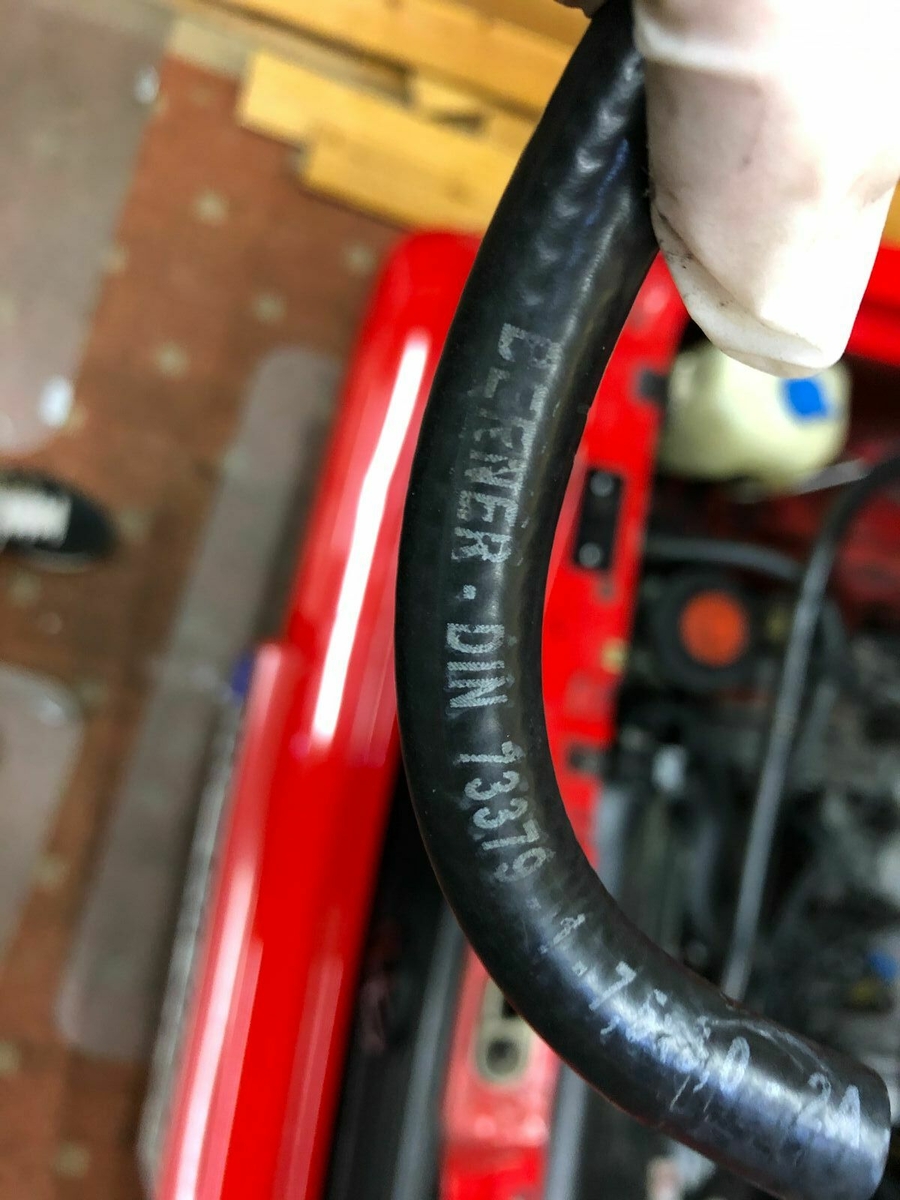 Der andere Schlauch ist der Vorlauf von Benzinleitung zum Rail. Der Rücklauf hatte keinerlei Risse. Der Vorlaufschlauch lediglich an der Biegung. Herstellung ist 31/11. Passt ungefähr mit dem Einbaudatum. Ich hatte die auf jeden Fall vor dem Pumpengerödel hinten ausgetauscht.