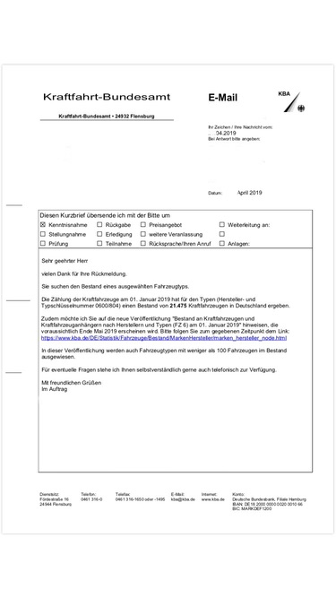 Fahrzeugbestand zum 01.01.2019 (0600/804) 21.475 Stück. Ich hatte nach meinem Modell gefragt, ein 2H CL EZ 04/1991.