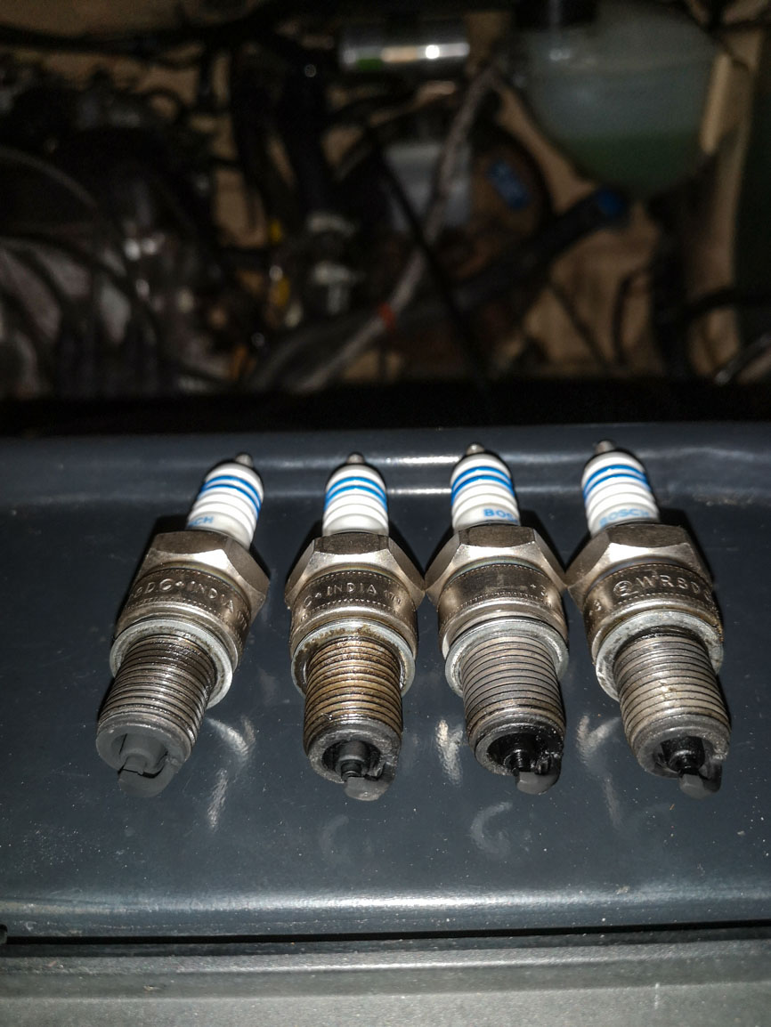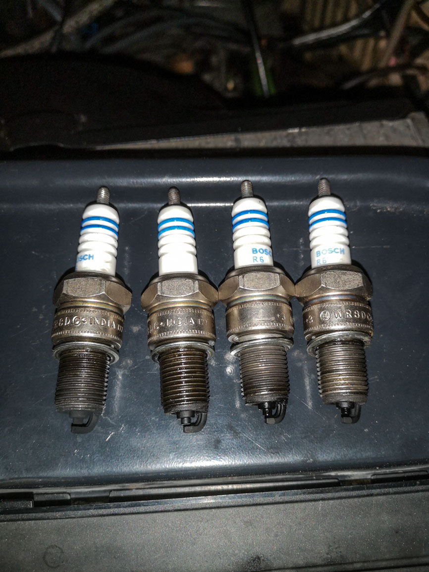 Habe erst die Zündkerzen herausgenommen und diese sauber gemacht (siehe Bild)