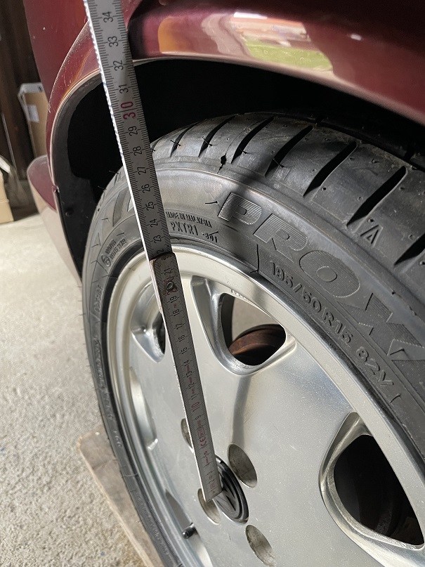 Messe von Felgenmitte zur Radhauskante 32cm. Vorne habe ich ca. 35cm gemessen.