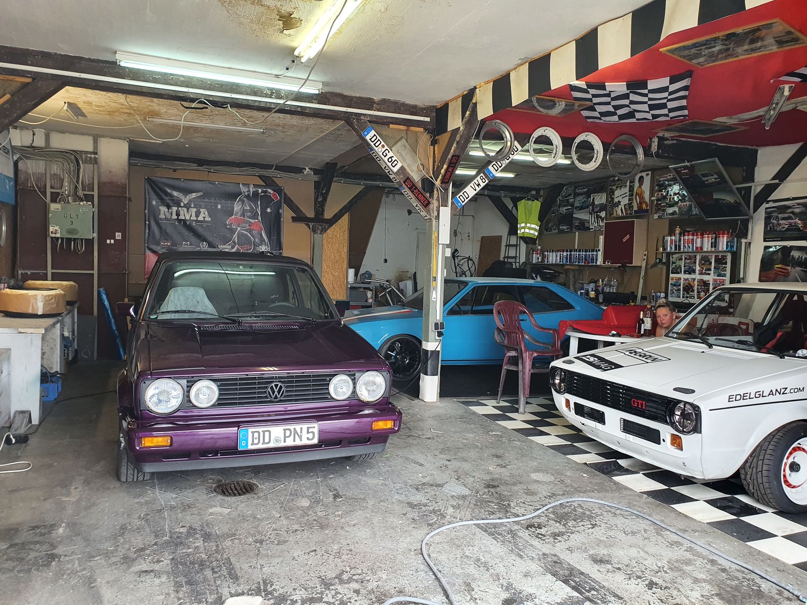 Heute zog mein überholtes originales Fahrwerk mit neuen Bilstein B4 Dämpfern, neuen originalen Golf 1 Domlagern und vorn Polo 86C Federtellern gegen einen eventuellen Hängearsch ein.