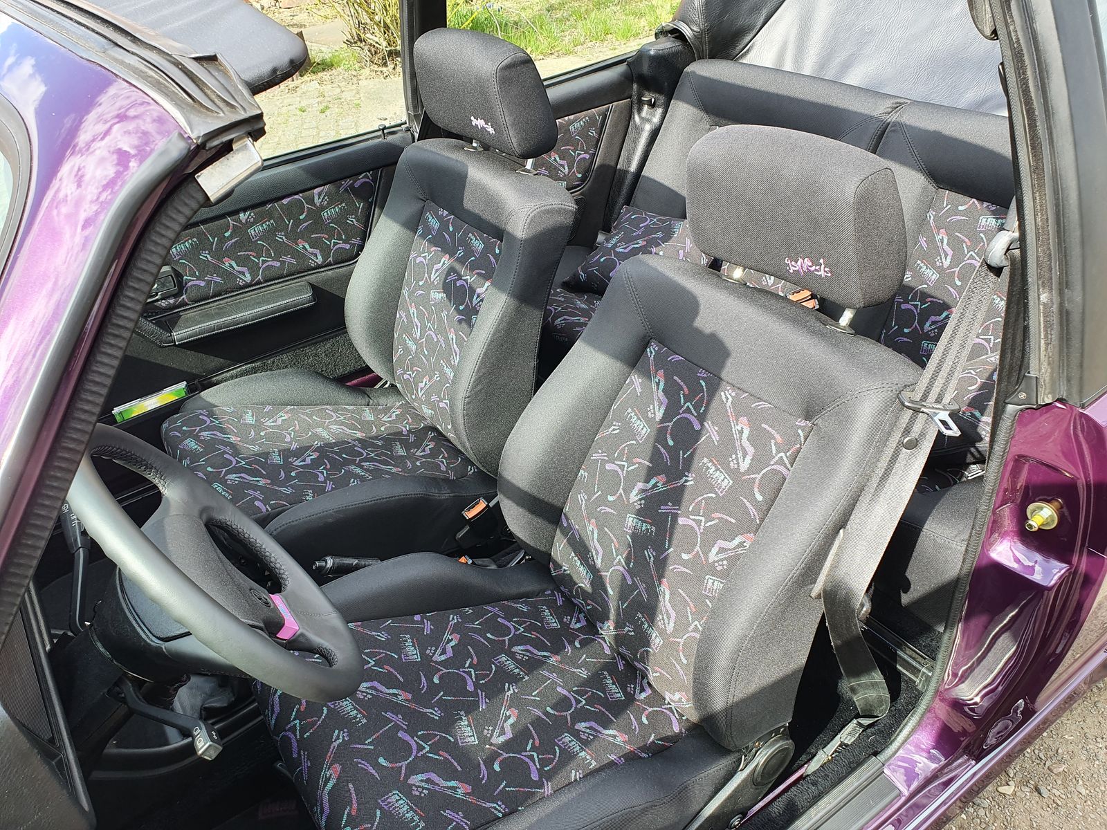 Nur die Bezüge erneuern, also den schwarzen Stoff auswechseln 400€ komplett. Die Kartentaschen mit annähen a' 40€. Ist zwar nicht original aber im Cabrio ist ja Stauraum Mangelware. Und das siehst erst auf den 2ten Blick. Gut, einer hier nielst das sofort. ![]()