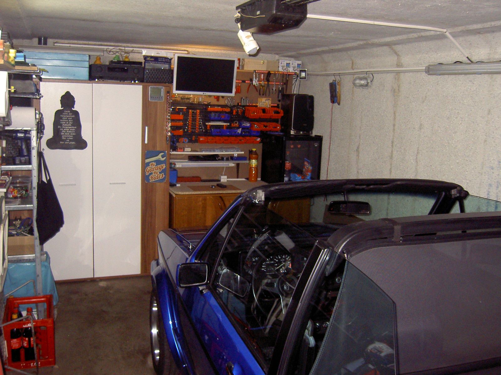 Gestern die Räder an Audi A2 und Scirocco gewechselt, heute die Räder an der Pritsche gewechselt, Termin zum Abmelden über Winter ist der nächste Samstag, Scirocco heute weg gebracht, der schläft bei einem Freund, morgen mal den Golf2 freilegen, der steht hinter Betonmischer, T3-Teilen, Fahrrädern und Mülltonnen und genau da kommt das Cabrio dann nach einem Reifenwechsel auch hin...