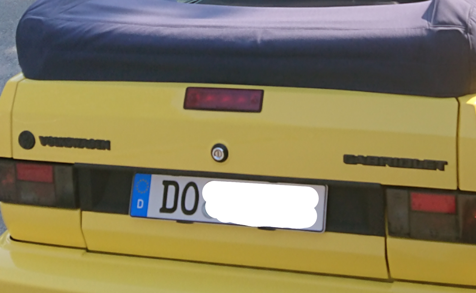 Teilweise sind diese Einsätze auch stecken geblieben, dann war es wieder fummelig, die herauszubekommen. Und beim "Cabriolet"-Schriftzug hat der Kleber echt Spuren am Lack hinterlassen. Aber da kommt ja auch wieder ein neues drauf.