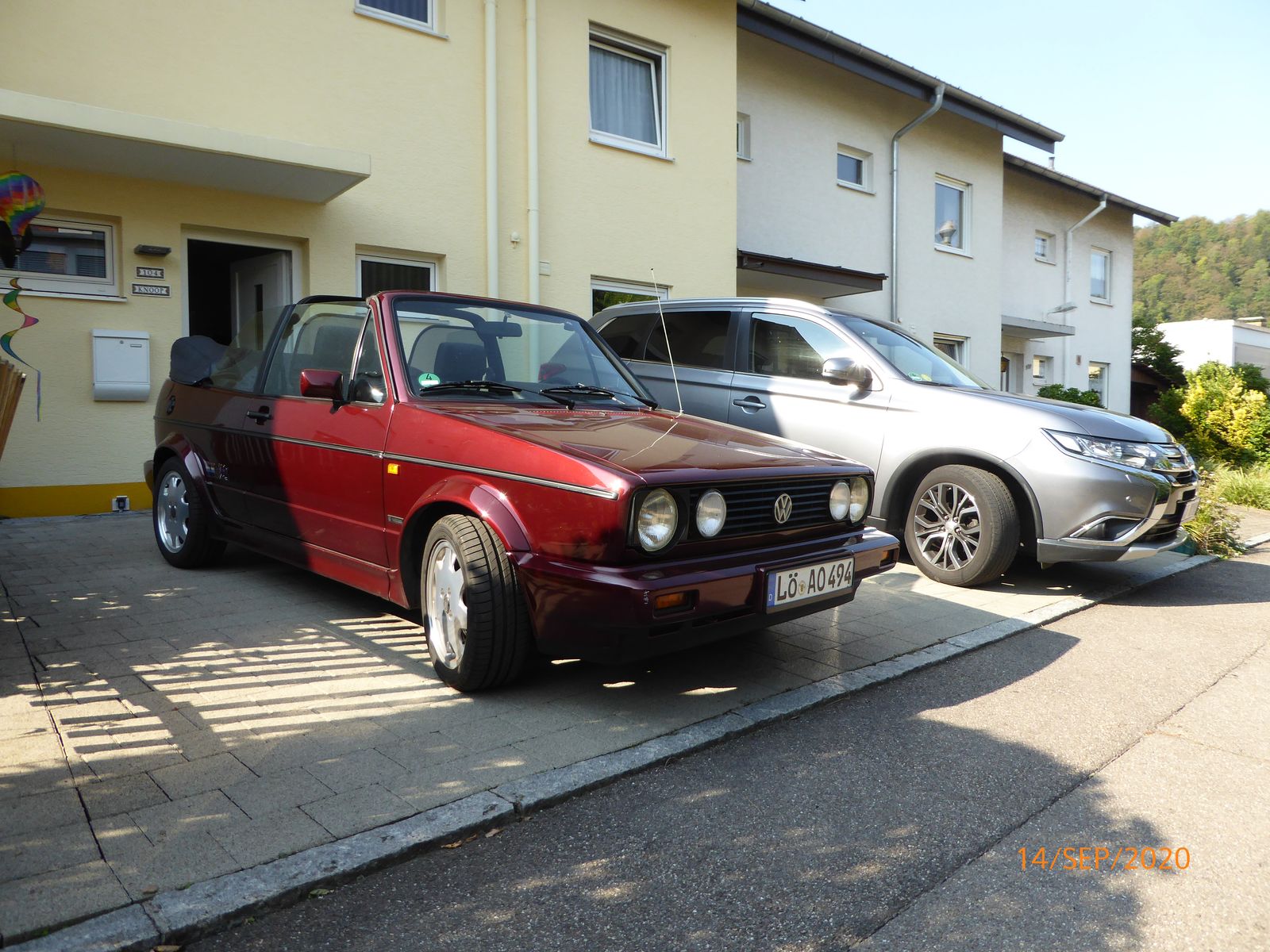 Nachdem ich an der Bergstrasse im August ein tolles 1ser Cabrio gefunden hatte, war es für mich klar, die mehr oder weniger großen Mängel gleich korrigieren zu lassen. Die Probefahrt dort war für mich eine Katastrophe und ich hätte den Wagen nicht gekauft, denn ich kann Fahren und Putzen aber beim Schrauben habe ich zwei linke Hände. Zum Glück half mir Dirk , der mich beruhigte und mir versicherte, das kann mit "kleinem Geld" behoben werden. Er ist begnadeter Golf 1 und 2 Kenner und übernahm die Aufgaben.