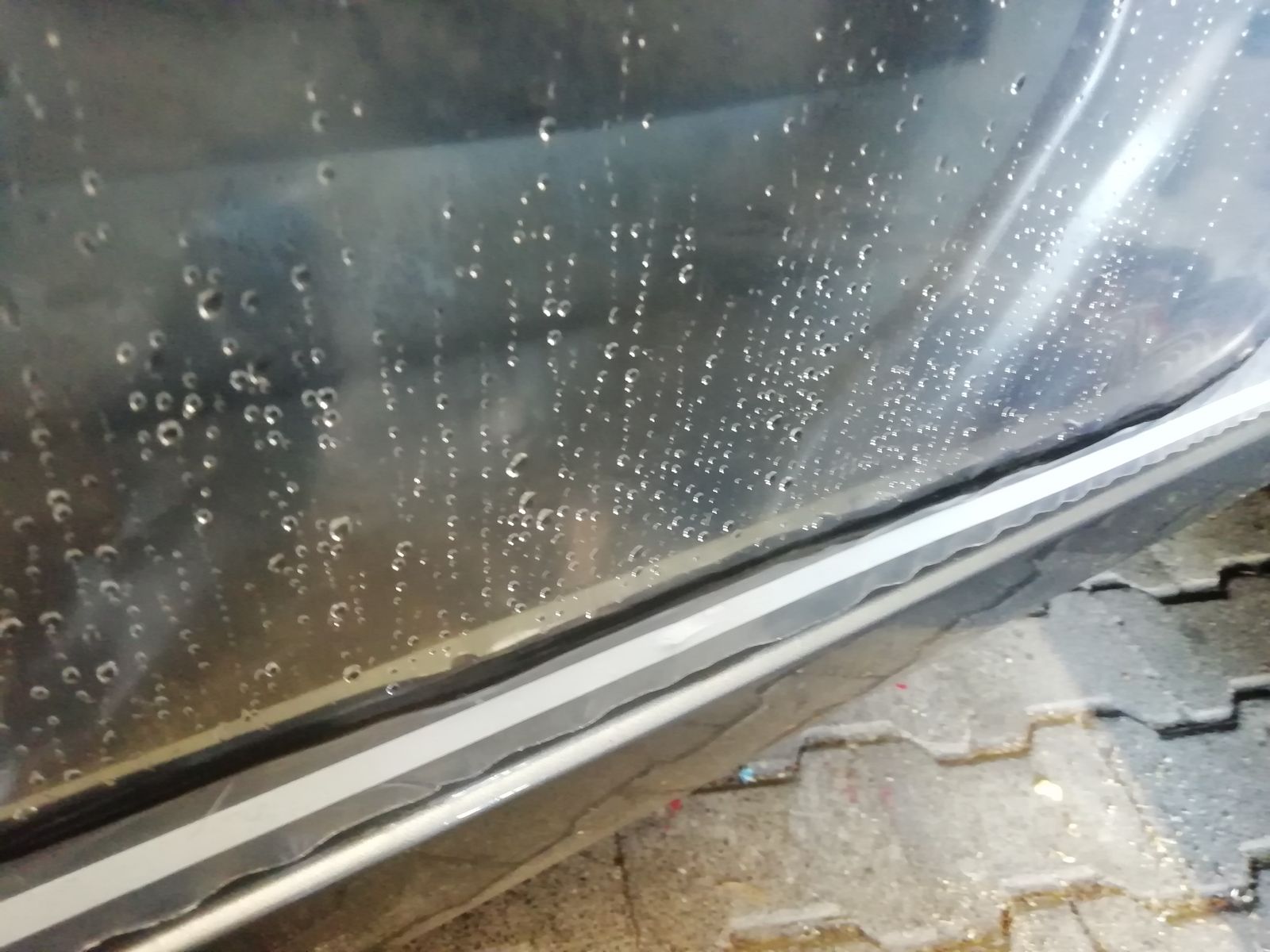 Habe zunächst außen doppelseitiges Klebeband gelegt und dann den Wasserverlauf versucht mit Butylschnur zu steuern, aber ich schaffe es nicht. Das Wasser kommt immer an unerwünschten Stellen an.