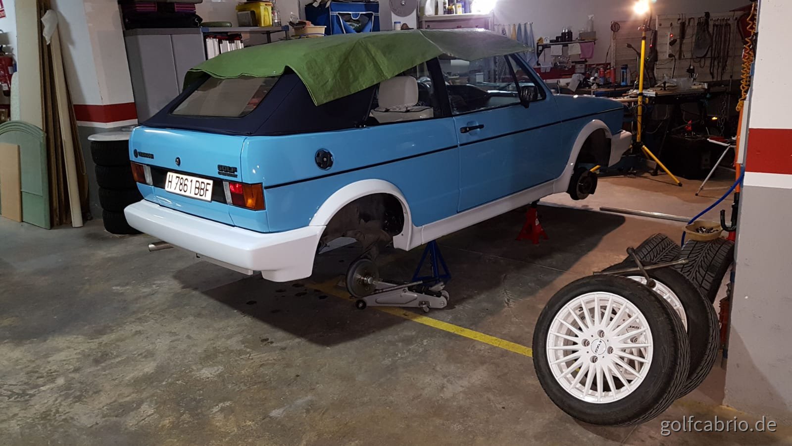 Im Moment steht der Golf auf Böcken, da ich die Stoßdämpfer alle tausche und die alten schon raus sind, leider habe ich hier ja keine Hebebühne, die blieb in D