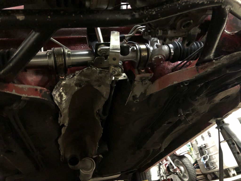 Mittlerweile ist das neue Lenkgetriebe wieder drin. Eine Steuerleitung war nicht richtig gebogen und lag an der Spritzwand an, die musste ich etwas umbiegen.