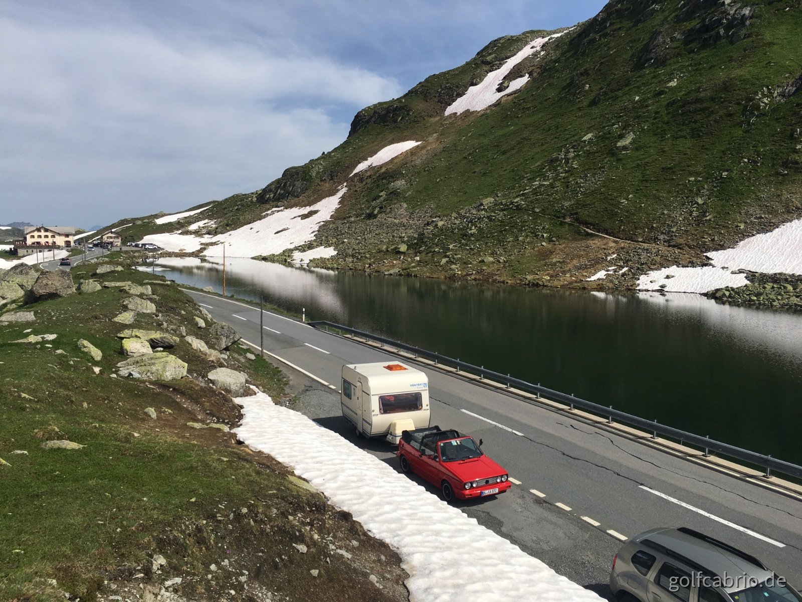 Dieses Jahr ist das Cabrio auch gut beladen mit Schlauchboot und Aussenborder, der fuhr liegend auf dem Beifahrersitz mit.