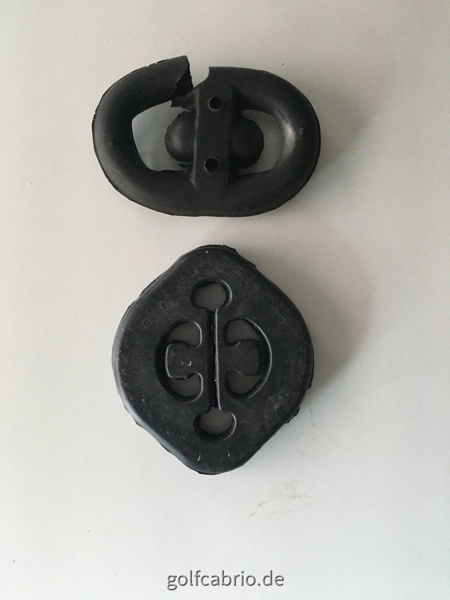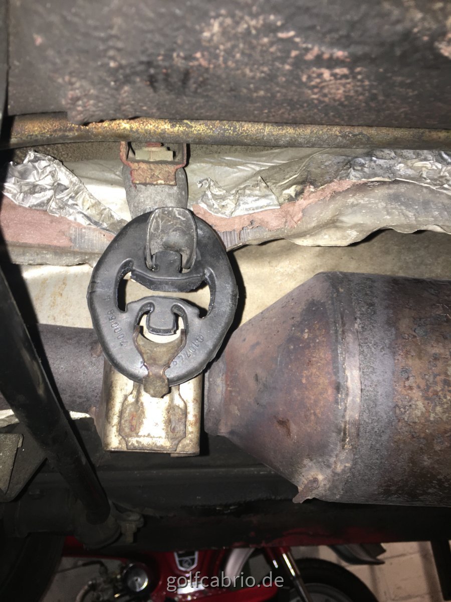 habe heute das nun schon mehrfach gerissene Auspuffgummi (immer aus dem Zubehör, bei VW gibt es das nicht mehr) durch ein Originalteil ersetzt, von Mercedes. Das neue Teil hat innen drin wohl eine richtige Kette, sollte also nicht mehr reißen. Montagetipp: mit einem Kabelbinder zusammenziehen dass es möglichst lang ist, unten am Halter des Hosenrohrs einfädeln und denn mit nem Schraubendreher oben drüber.