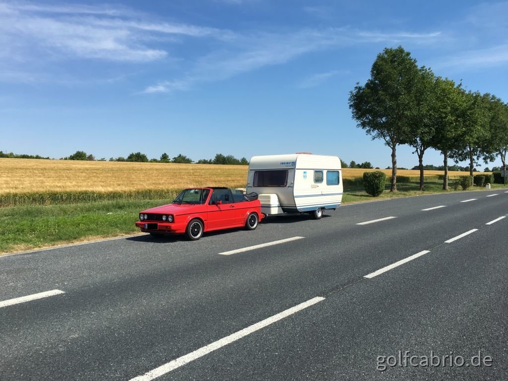 In den Campingurlaub geht es mit einem alten Wohnwagen. Da kommen jeden Sommer so 3-4000 km mit Wohnwagen zusammen. Meistens Frankreich, Italien, Alpen.