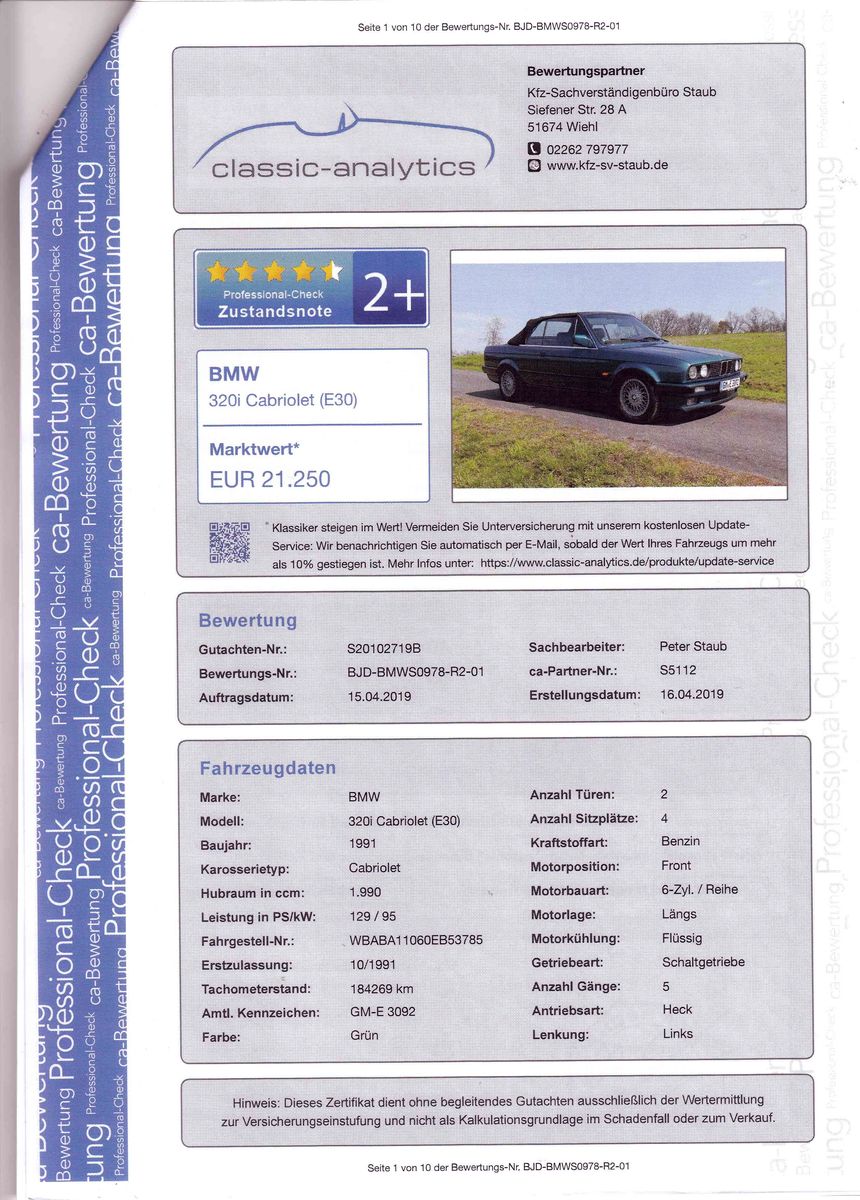 Hatte vor 3 Jahren von meinem E30 Cabrio voll, ein Kurzgutachten machen lassen: 150€, handeln ging nicht