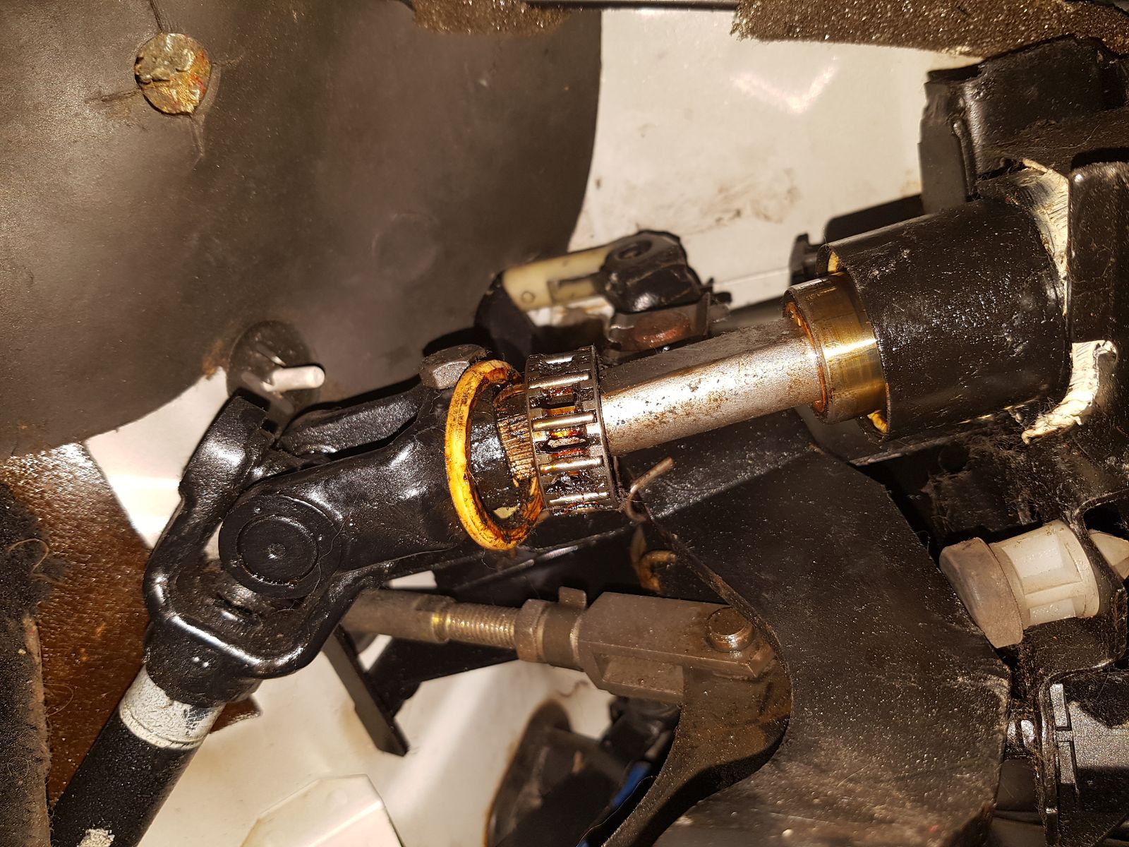 • .. und als ich ihn vom Anhänger gefahren habe, war das untere Lager der Lenksäule nicht mehr da, wo es sein sollte.