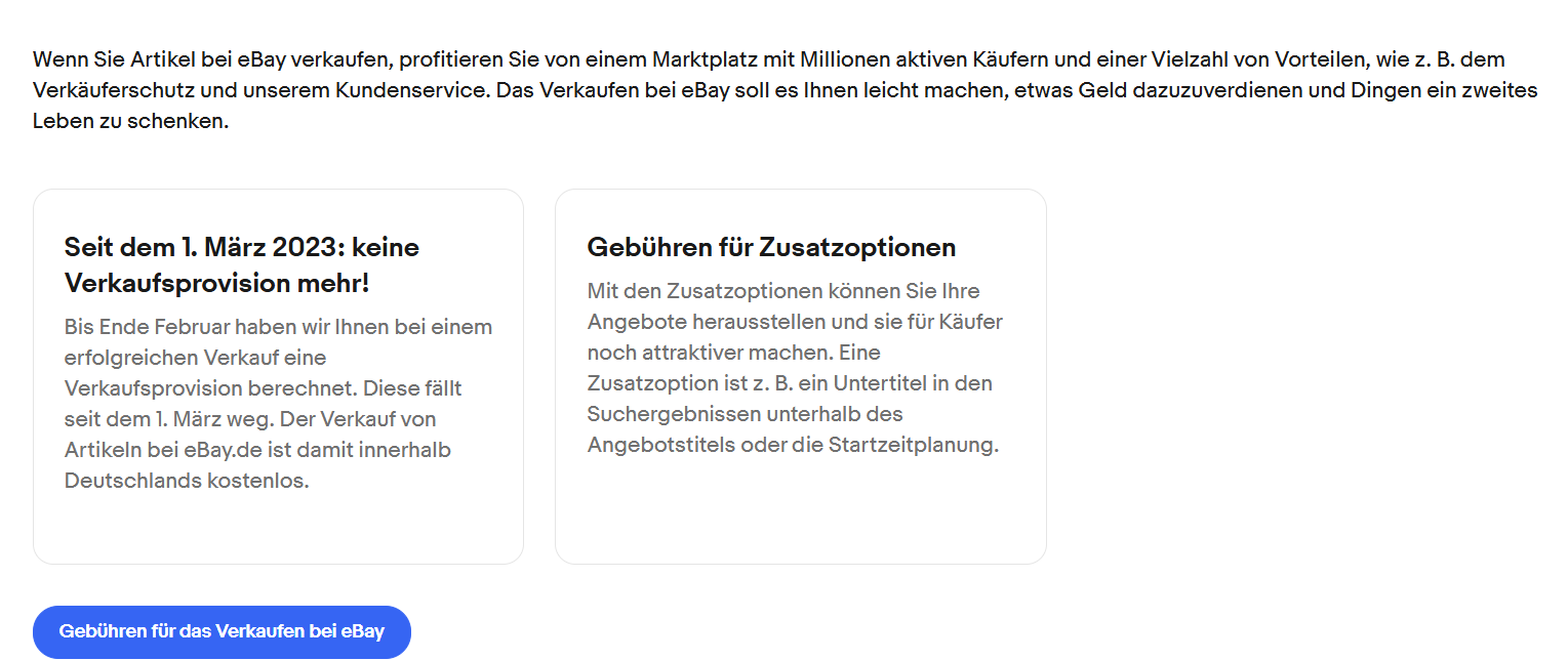 ich habe bei ebay auch schon lange nichts mehr verkauft, weil mir die Gebühren einfach unangemessen hoch erschienen. Es gab ja schließlich auch kostenlose Marktplätze.