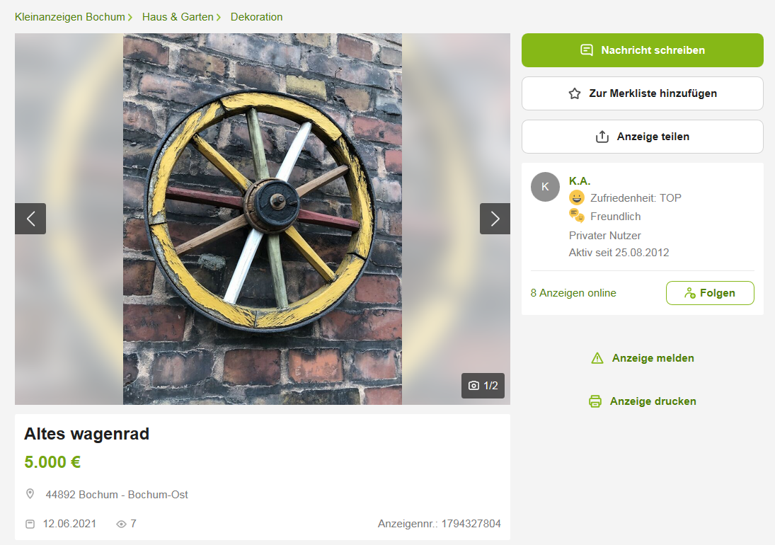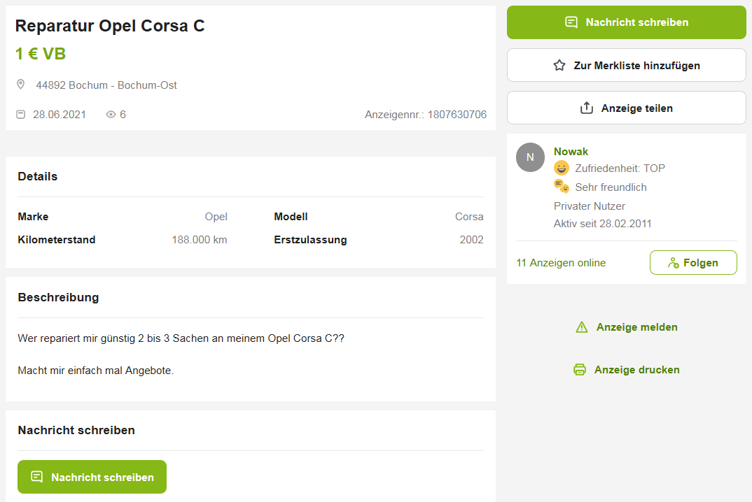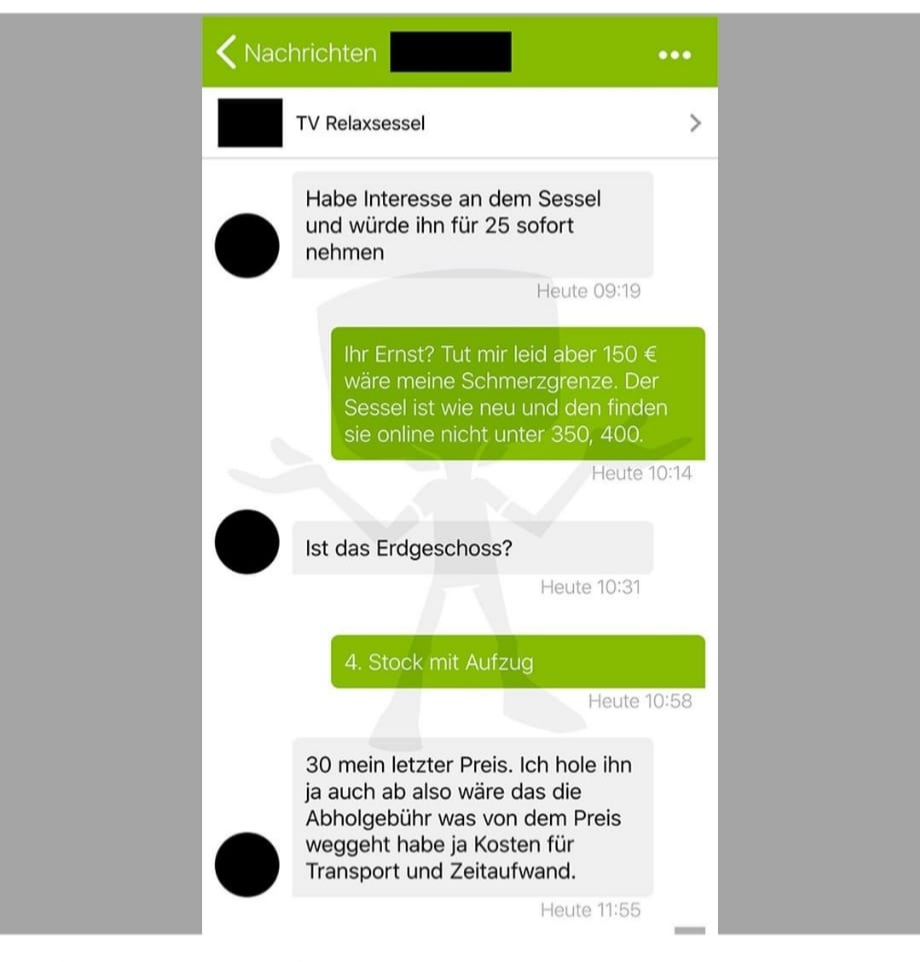 Da muss ich meinen Senf auch mal dazugegeben. Es ist ein Unding wie bei EBay Kleinanzeigen umgegangen wird. Es werden Kaufversprechen gemacht und dann hört man nichts mehr. Es gibt auch keine Umgangsformen von diversen Leuten, es 🤢 einen nur noch an.