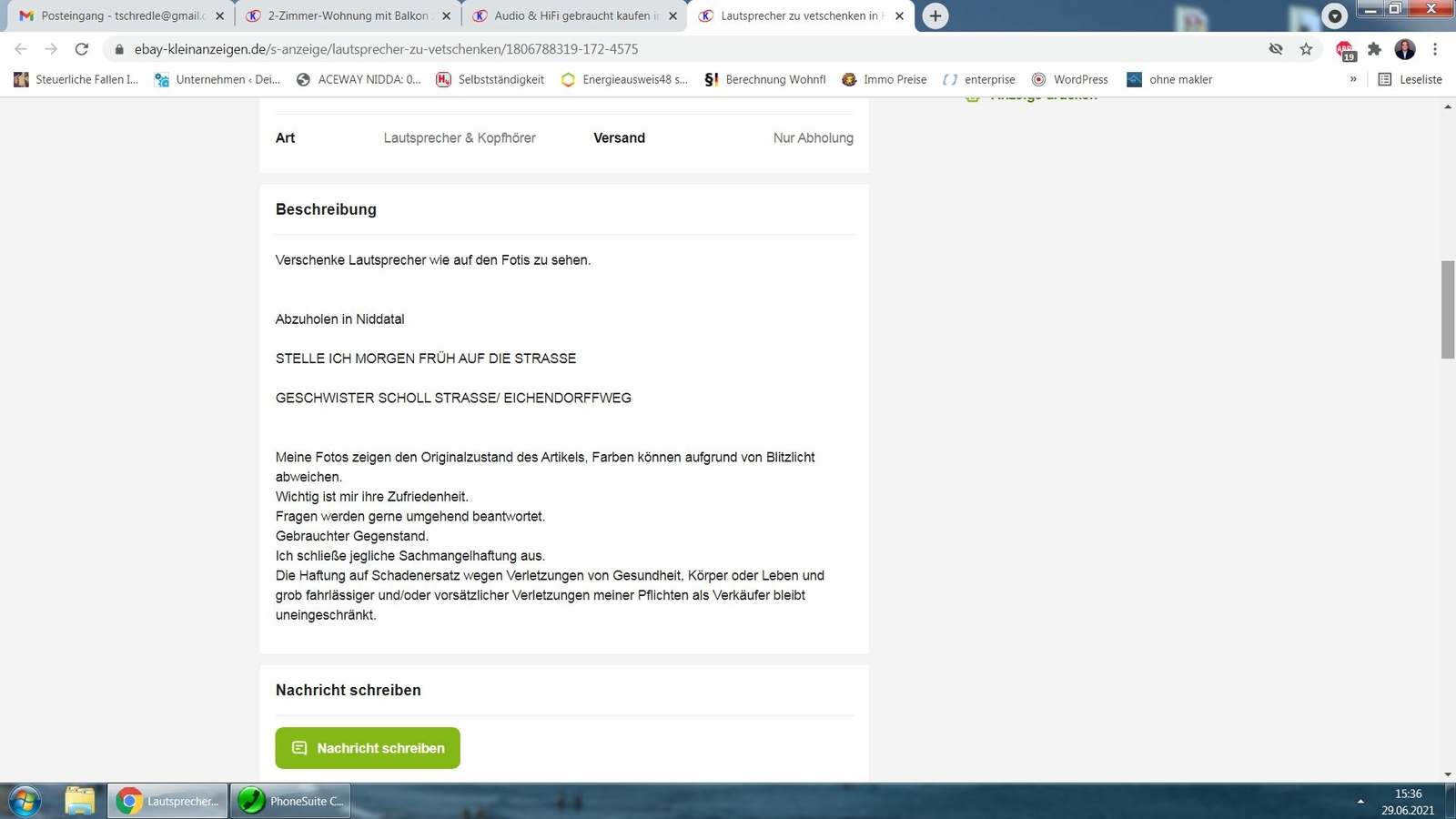 . Ganzer Text war als "zu verkaufen".