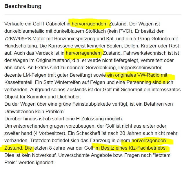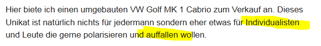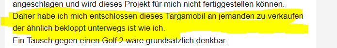 Na laut Anzeige wurde die Kiste aber inzwischen verkauft. Jeden Tag....usw.