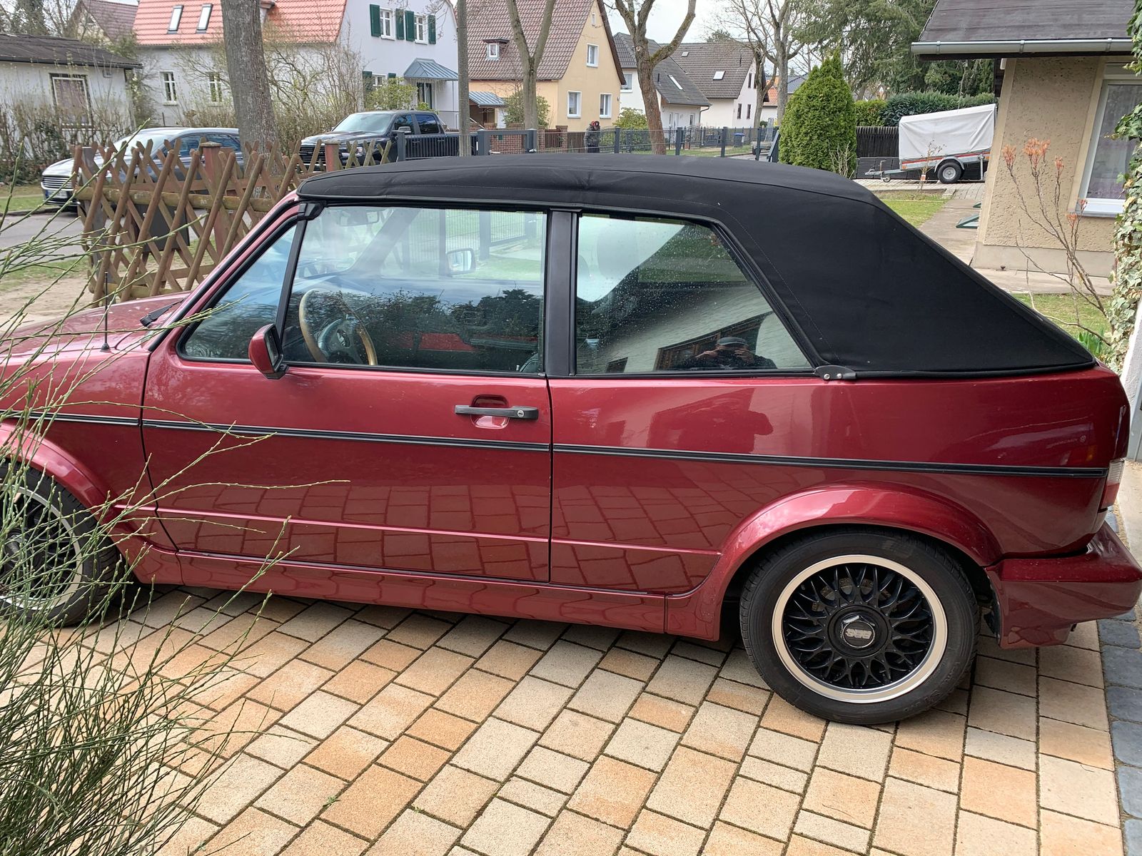 Mein Cabby hat einen 2H Motor mit 225000tkm, originale BBS in 15", ein H&R Fahrwerk und einen Supersport ESD, schwarze Lederausstattung. Das Verdeck und die Innenausstattung ist lt. Vorbesitzer(in) vor 4 Jahren erneuert worden.