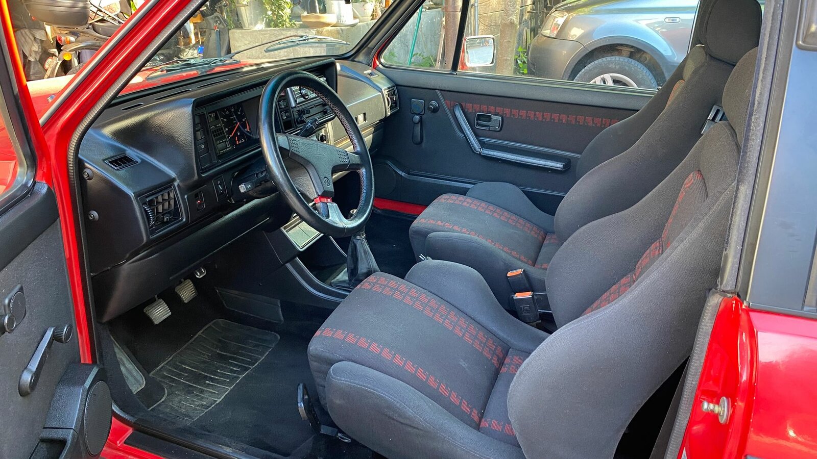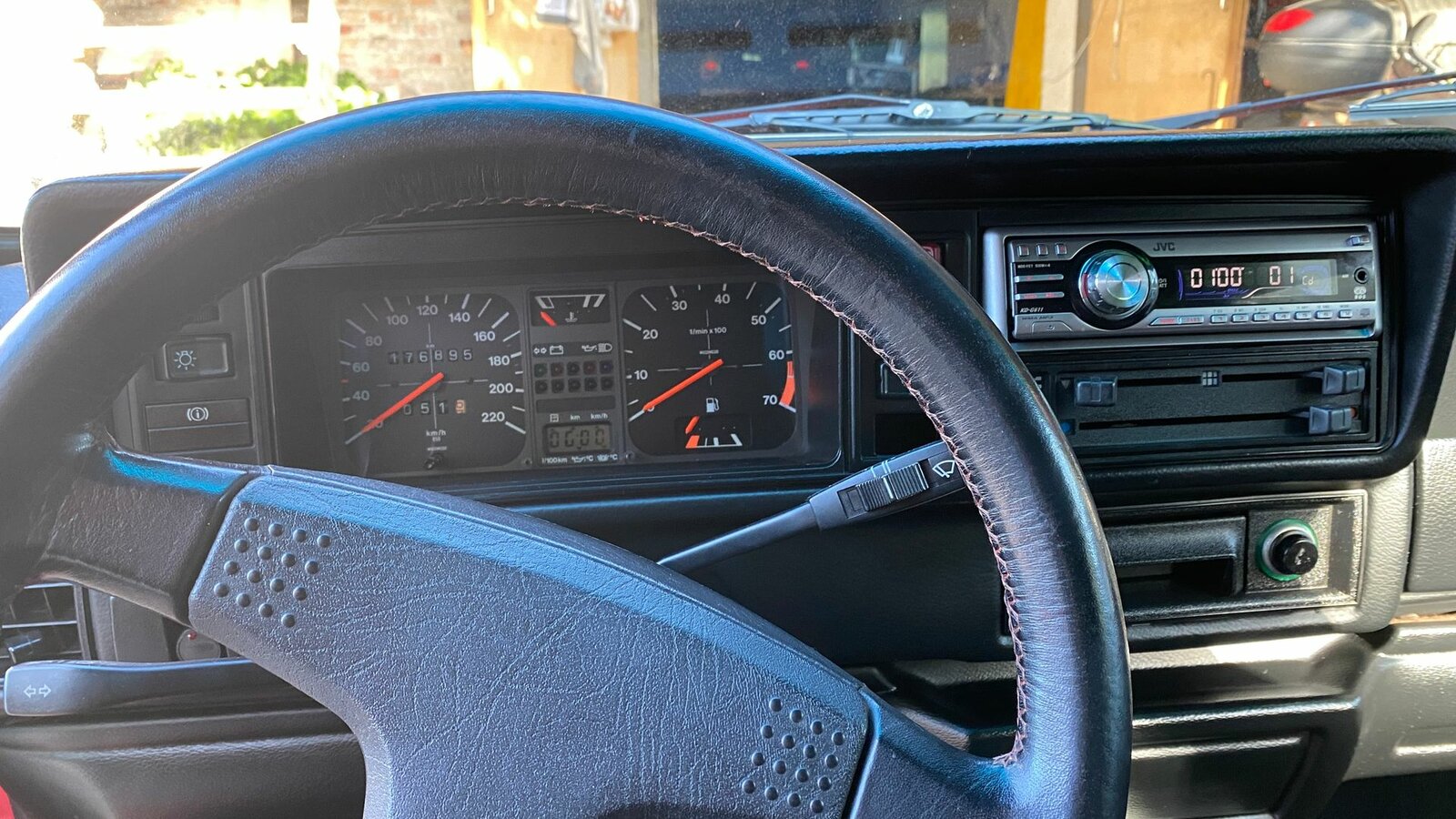Innenraum sehr schön (bis auf ein Brandloch in der Rückbank) und sauber, Unterlagen da, Originalfelgen, Motor läuft sauber, einzig die Servopumpe stöhnt ein bisschen, Unterdruckzischen im Motorraum und hier und da hat es kleine Macken sowie eine Beule hinten links.