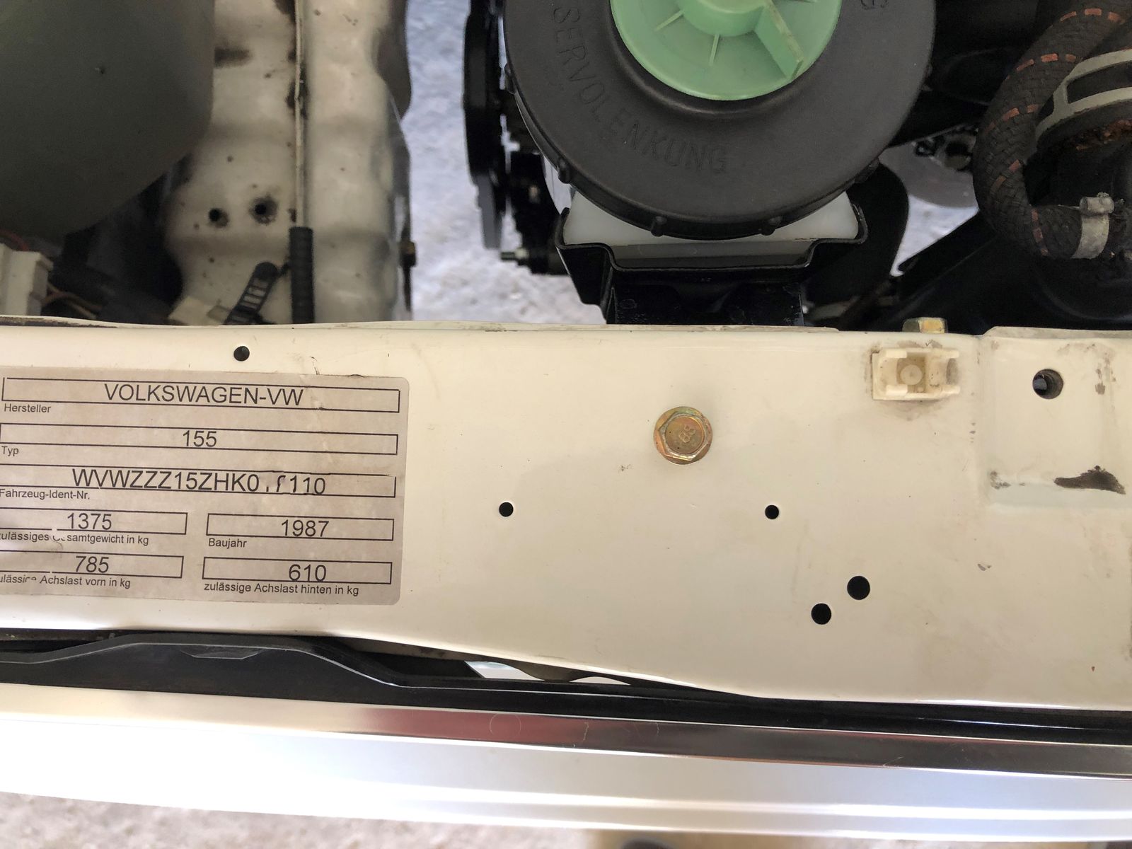 Typenschild Motorraumquerträger