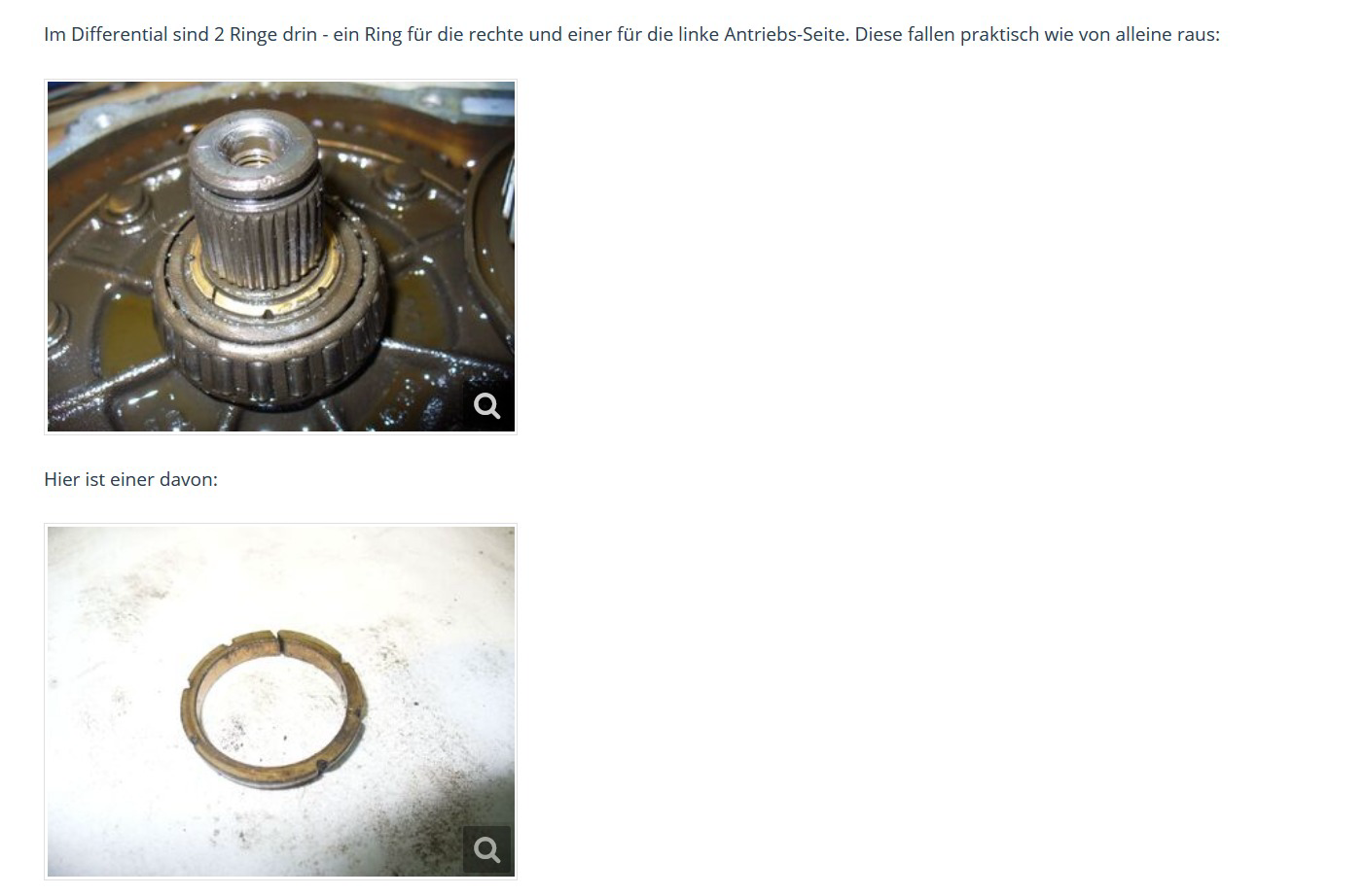 Der Konusring dahinter welcher die Ausgangswelle im Lager zentriert war kpl zerbröselt , somit spiel (gar nicht fein fürs Differential) und undicht.