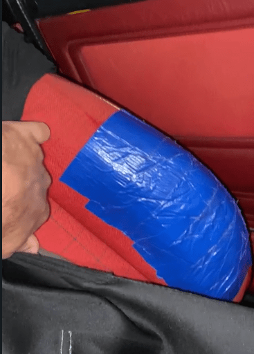 Hat jemand einen roten Stoff-Sitz liegen oder roten Stoff um die Sitzwange zu reparieren?