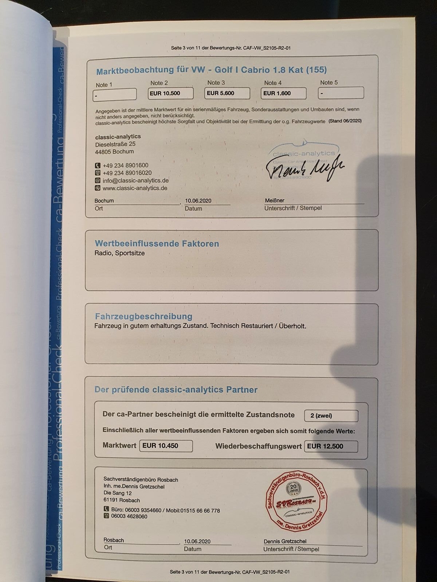 Ich habe mir trotzdem mal, auch wieder um Erfahrungen zu sammeln das Wertgutachten von dem Händler zuschicken lassen. War für mich nur eine kurze Mail, daher auch wenig Aufwand