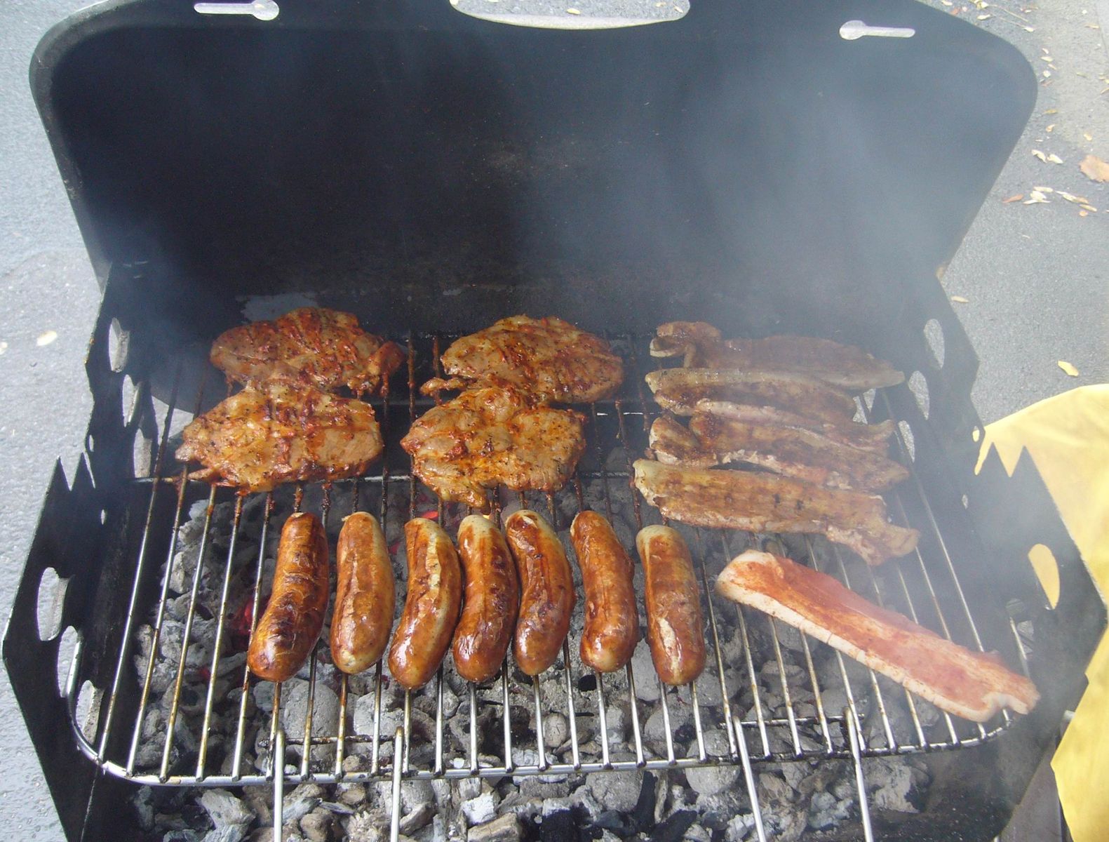 Cola, Cola Zero, Cherry Cola, Fanta, Sprite, Pepsi, Wasser mit und ohne Blubberbläschen und sonst noch so 5-6 Sorten von irgendwas, Mandeln, Bauchfleisch, Nackensteaks, Nürnberger, XXL-Bratwürste, Salate, Zwiebelringe, Salzstangen, Antipasti, Raclettkäse, Kräuterbaguettes, Knoblauchbaguettes, 3 Sorten Stapelchips, 20 Sorten Haribozeugs (welche Himbeere ???), Blockschokolade und was weiß ich noch alles