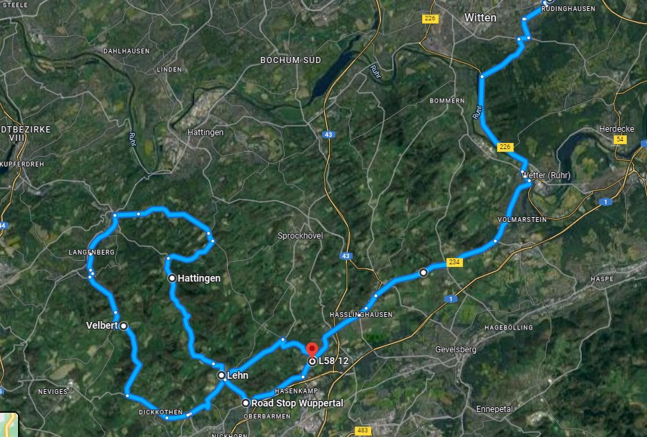 Den ersten Teil der Strecke bis Witten wird Udo die Tour anführen, ich übernehme dann ab Ortausgang Witten B234.