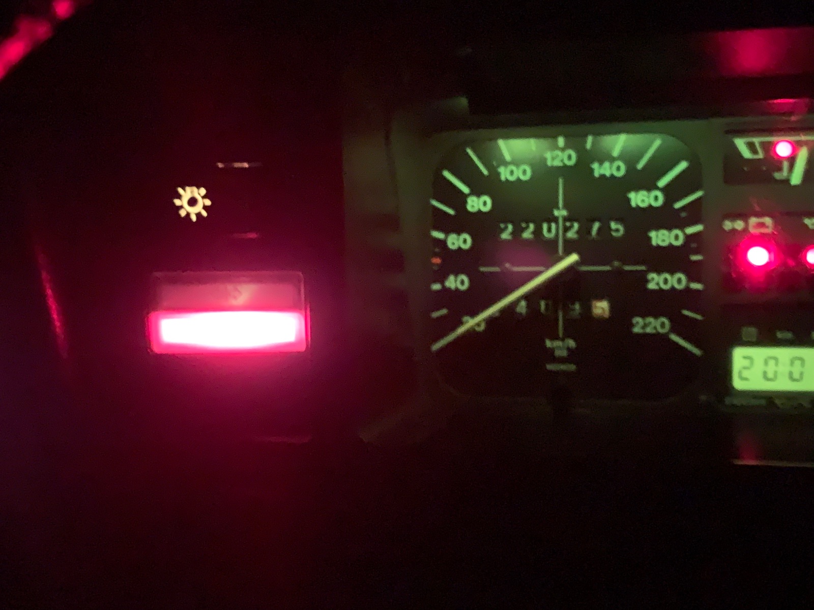 Cabrio aus der Garage geholt. Erste mal im Dunkeln gefahren. Gemerkt das der halbe Tacho dunkel ist (km/h Anzeige) Schalter auch dunkel sind. Cabrio getankt. Kann los gehen.
