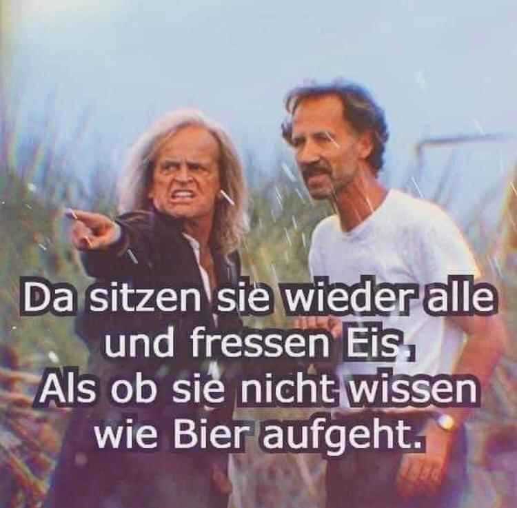 Da sitzen sie alle und fressen Eis. Als ob die nicht wissen wie Bier (oder Wasser) auf geht