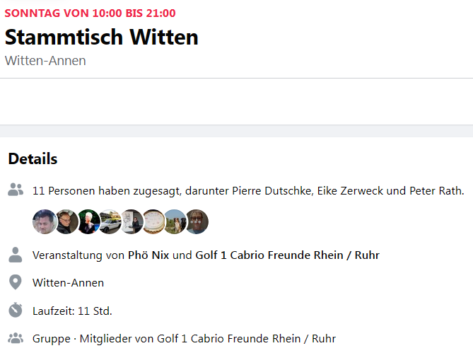 Allein aus der Facebook-Fraktion gibt es bereits 11 Zusagen - es wird wieder sehr gesellig